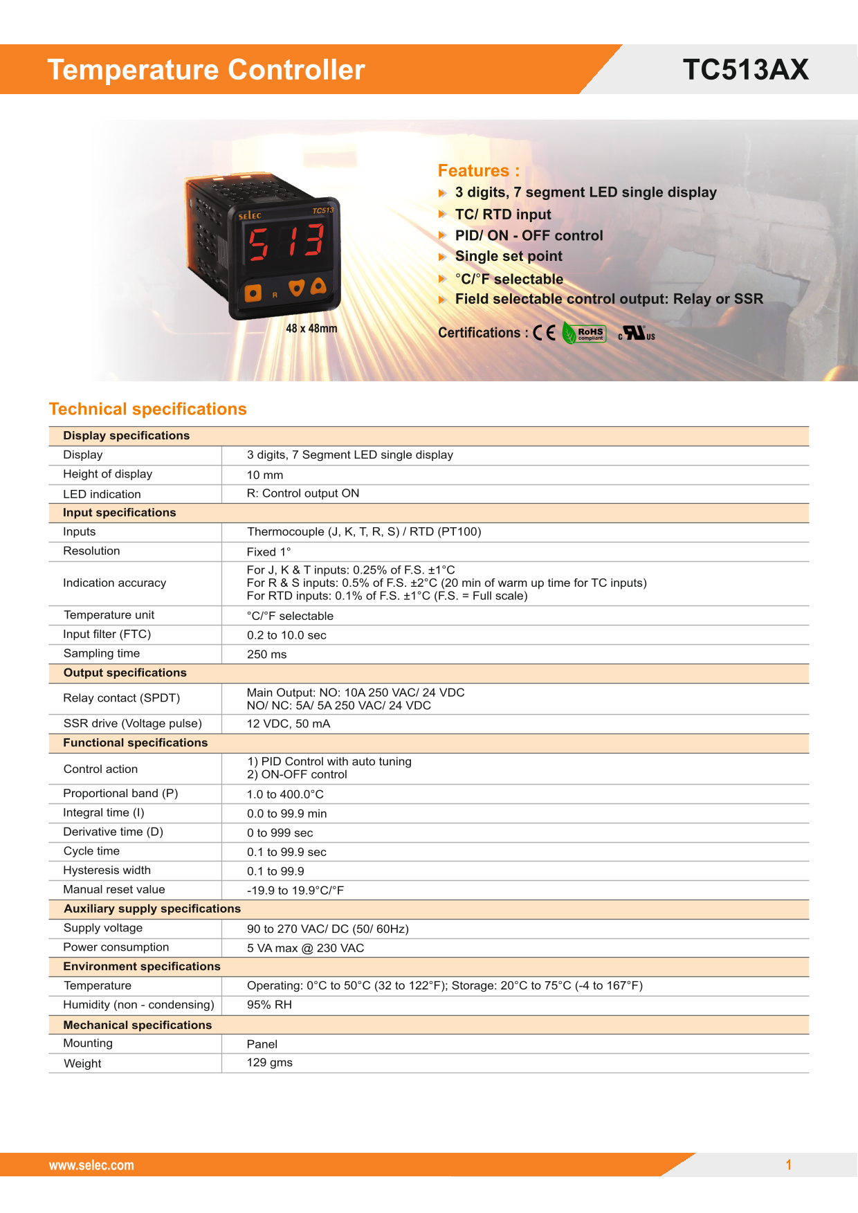Bộ điều khiển nhiệt độ SELEC TC513AX