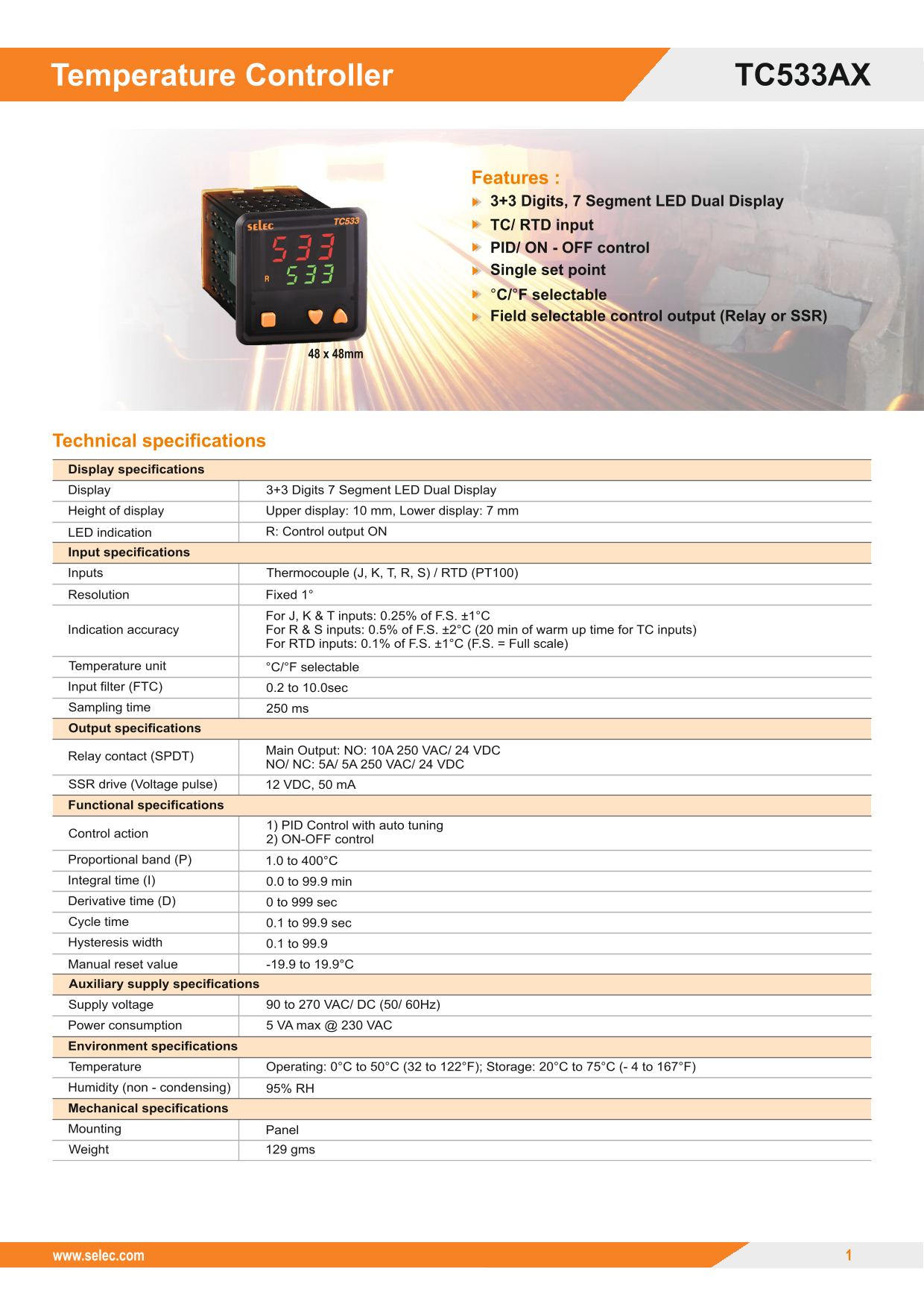 Bộ điều khiển nhiệt độ SELEC TC533AX