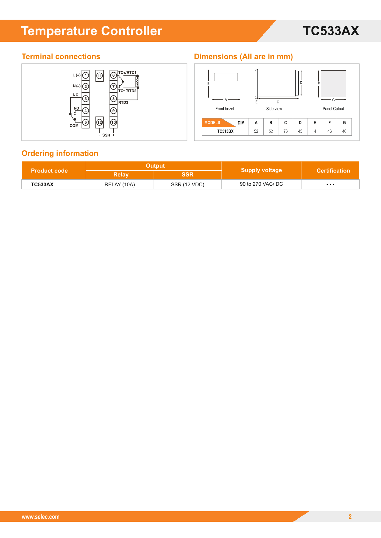 - Bộ điều khiển nhiệt độ SELEC TC533AX⭐ Chính hãng, Giá cực tốt. Hotline⚡:0902.281.283 | Cty Autovina Nhà Phân Phối IDEC, AUTONICS, HYUNDAI, MAX, Đầu Cốt, Cầu Đấu, Ống ruột gà lõi thép, Gen co nhiệt, Tủ Điện, và các phụ kiện khác.