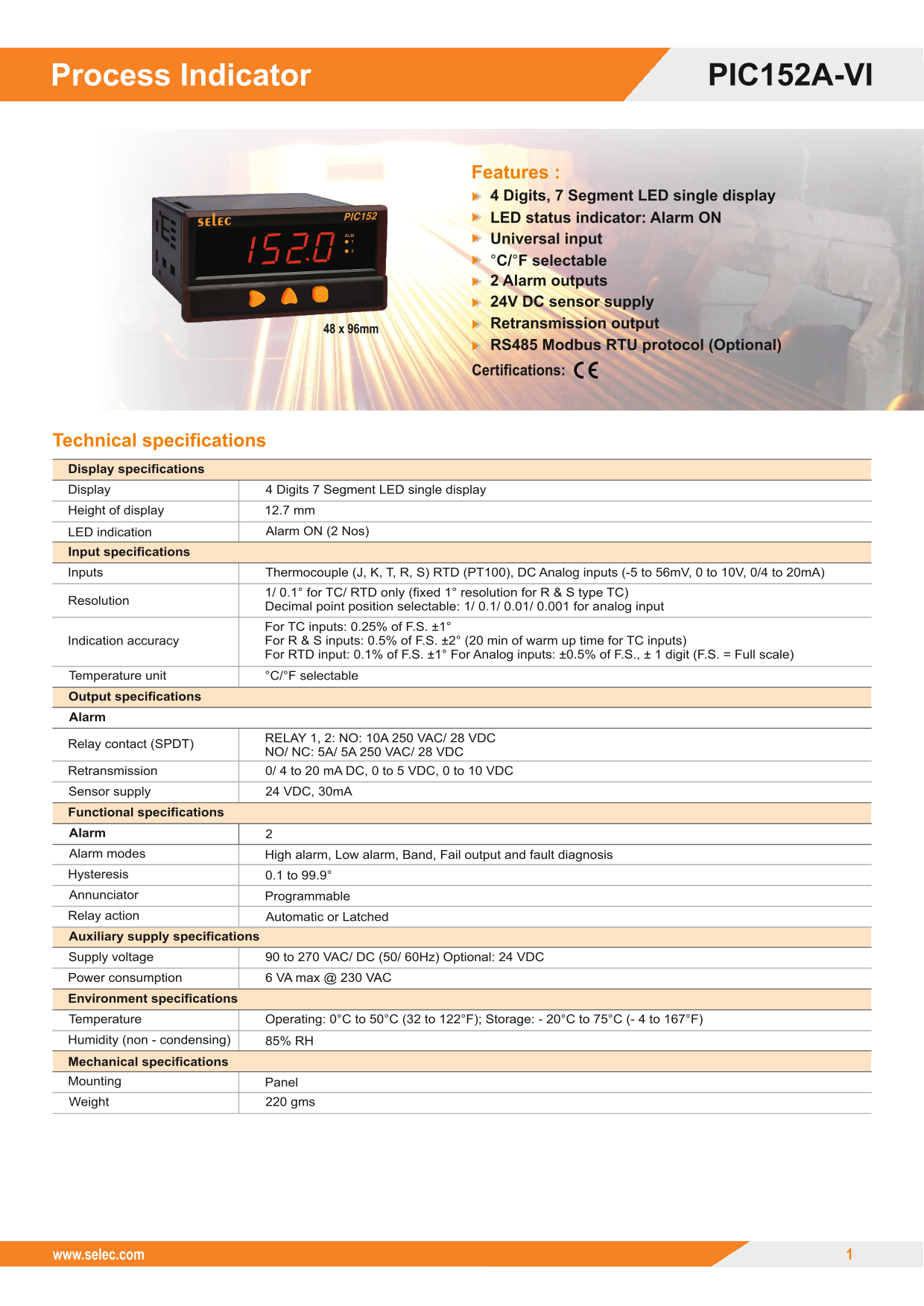 Bộ hiển thị đa chức năng SELEC PIC152A-VI
