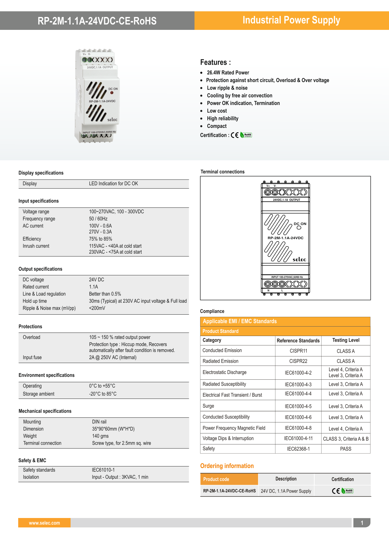 - Bộ nguồn SELEC RP-2M-1.1A-24VDC⭐ Chính hãng, Giá cực tốt. Hotline⚡:0902.281.283 | Cty Autovina Nhà Phân Phối IDEC, AUTONICS, HYUNDAI, MAX, Đầu Cốt, Cầu Đấu, Ống ruột gà lõi thép, Gen co nhiệt, Tủ Điện, và các phụ kiện khác.